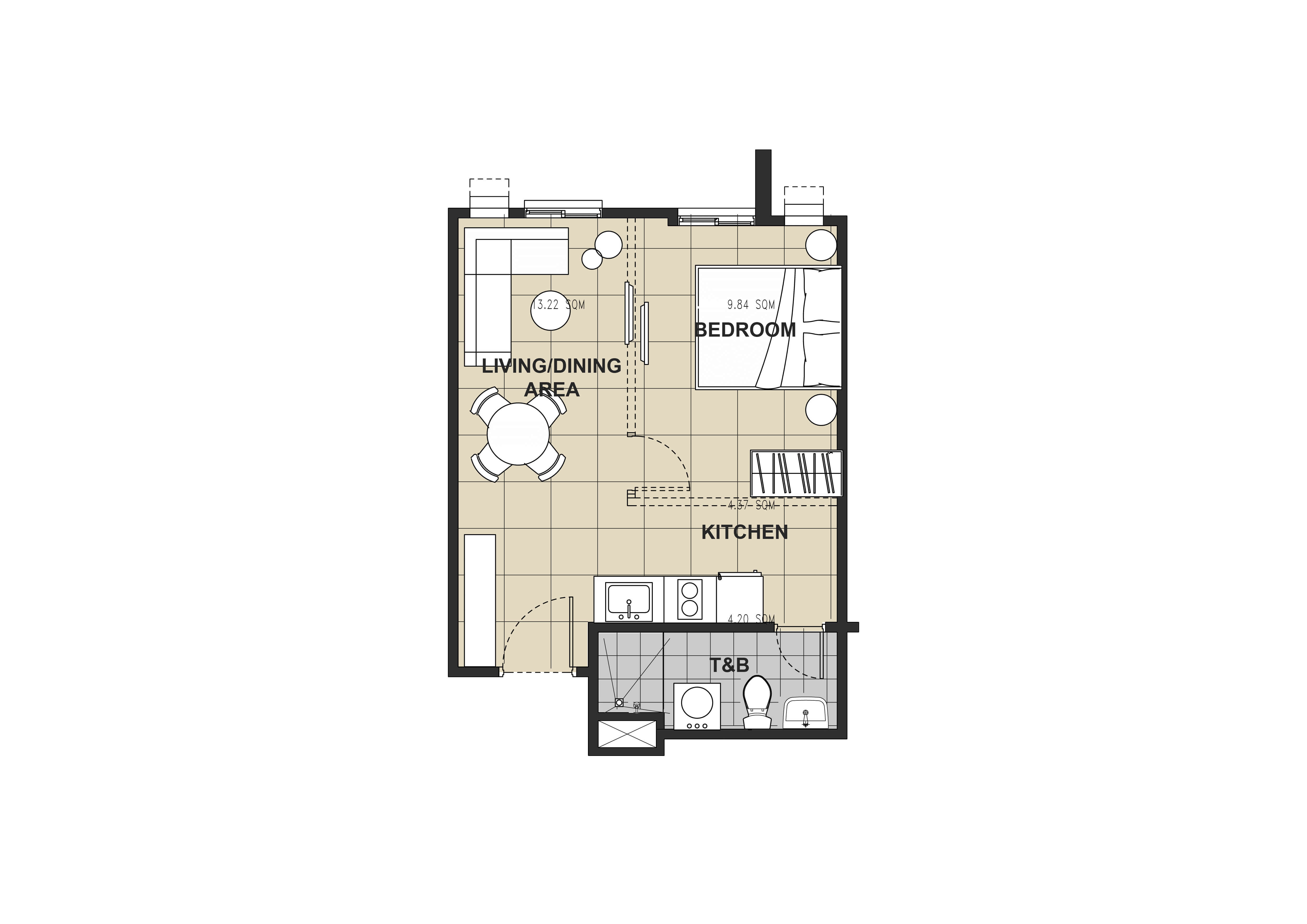 Choose from our range of 18- and 32-square meter unit types to call home.
